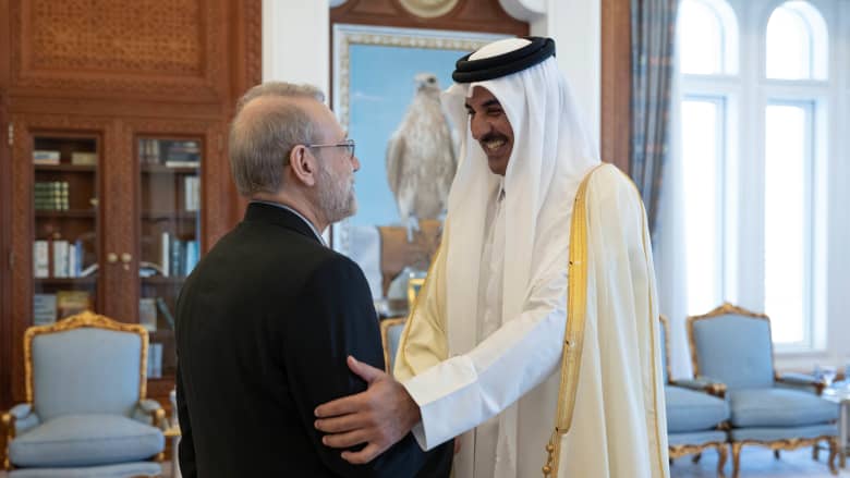 أمير قطر يلتقي علي لاريجاني.. وهذا ما ناقشاه في ظل التوترات بالمنطقة